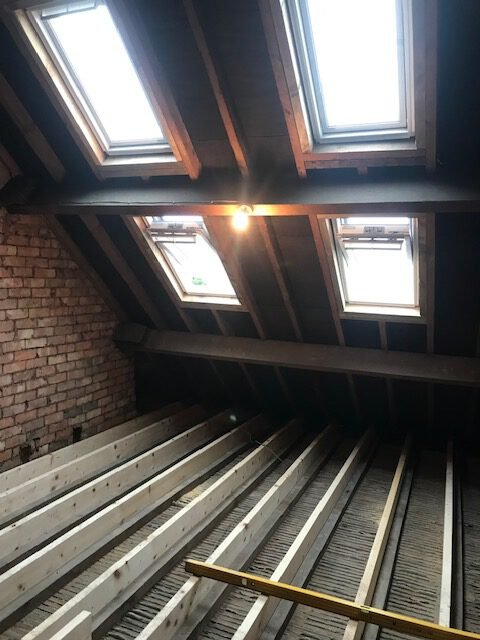 The loft was previously used only for storage, but with thoughtful planning and skilled craftsmanship, it has been converted into a comfortable and versatile new room. Our work began with reinforcing the existing roof structureand installing modern insulation to ensure the new space would be efficient and warm throughout the year.